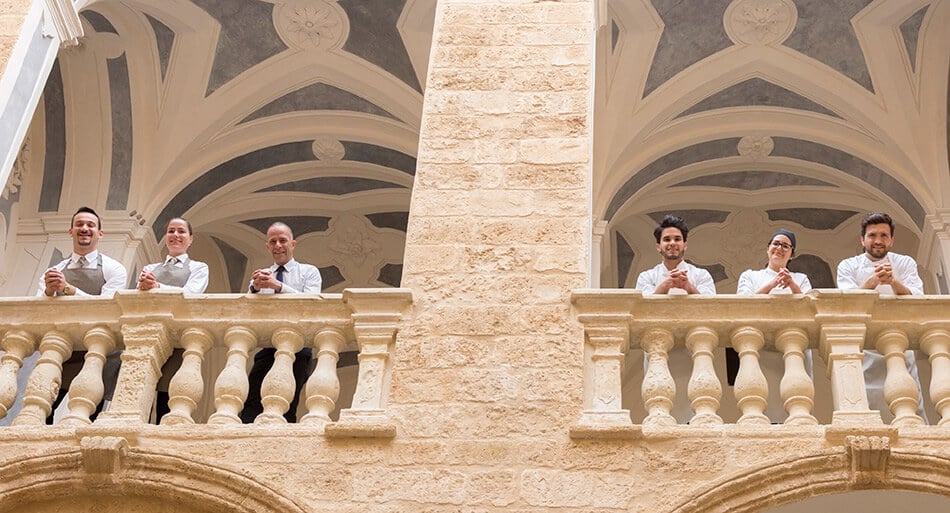 Or, ask to sit at the Chef’s Table in the former 17th century storage and bakery kitchens, now tuned into a sophisticated state-of-the art open kitchen where you will be able to follow our Chef Tommaso and his team as the dishes are being prepared.