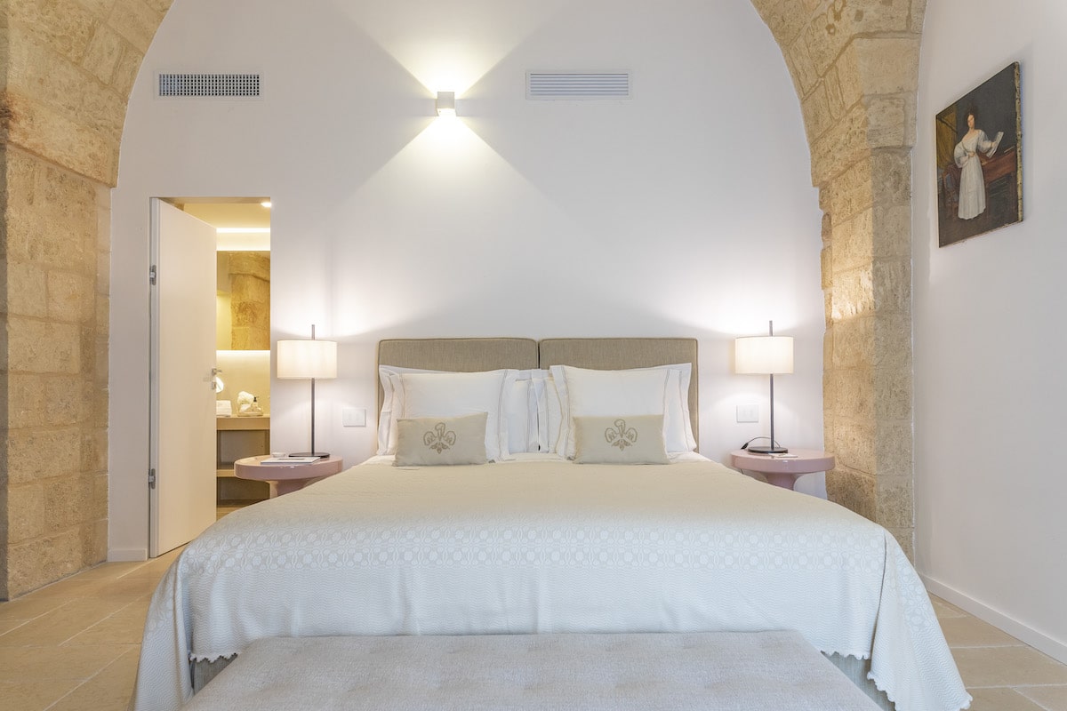 Castello di Ugento is a unique historic boutique hotel — a contemporary hideaway encased within golden 17th-century walls. The Rooms & Suites have all been lovingly curated with modern pieces from talented Italian designers alongside antique and vintage finds. Visitors can select a room of choice or book the entire Castello as an exclusive rental.